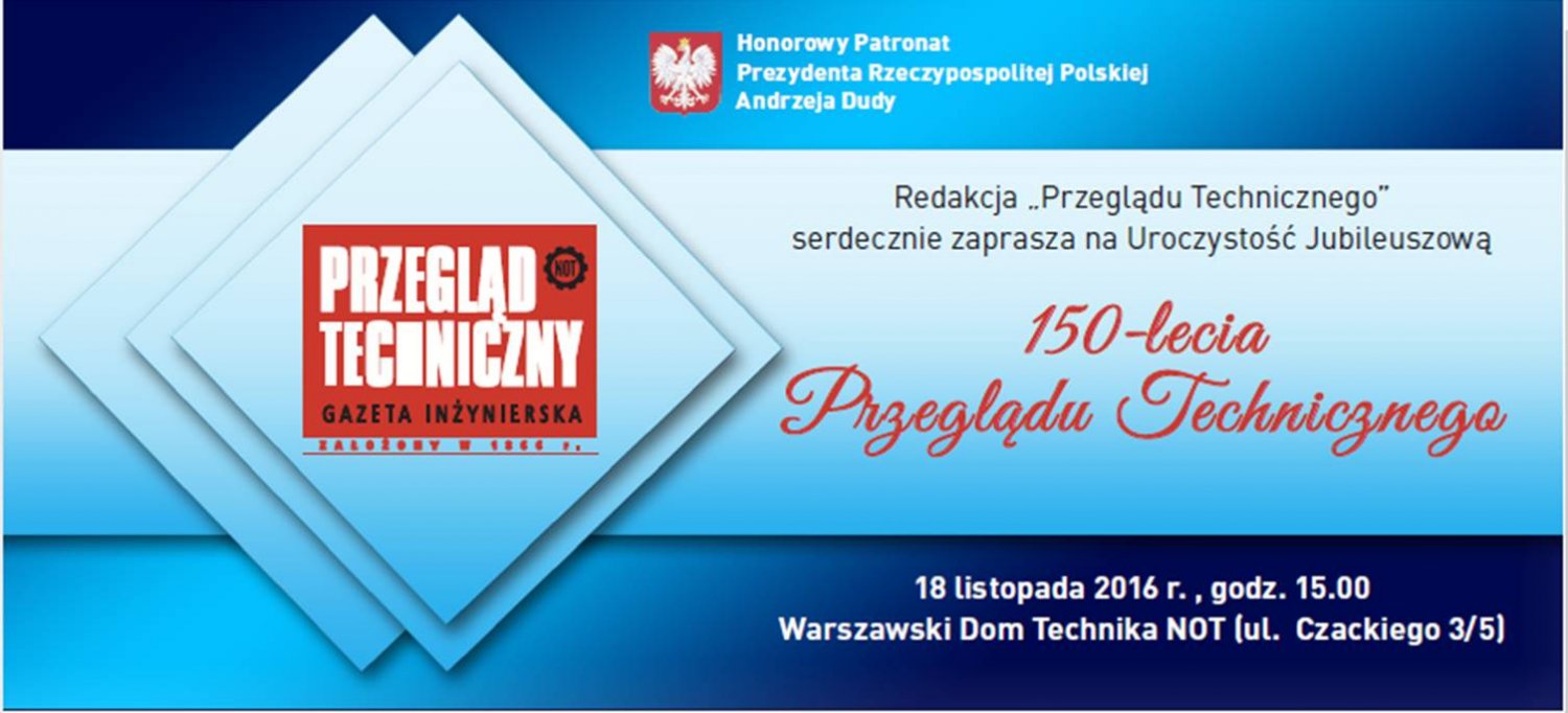 Moim dzisiejszym wpisem chcę zwrócić Państwa uwagę na jubileusz 150-lecia "Przeglądu Technicznego". Naprawdę niewiele jest czasopism mogących się poszczycić równie długą tradycją! A ponadto "Przegląd ..." dopracował się formuły czasopisma dla wszystkich, oczywiście poświęconego głównie problemom techniki, ale z szerokim kontekstem gospodarczym i społecznym, dlatego warto się tym jubileuszem zainteresować.