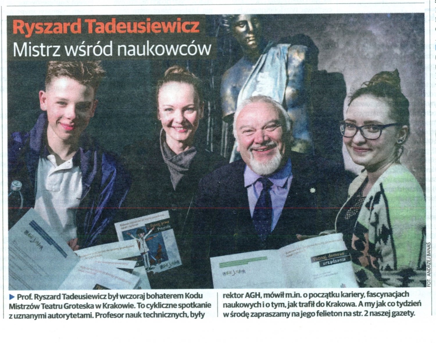 W efekcie jeszcze długo po zakończeniu spektaklu składałem podpisy na tych książeczkach, co uwiecznił fotoreporter Gazety Krakowskiej, a sama Gazeta następnego dnia zamieściła odpowiednie zdjęcie na pierwszej stronie. Skan z tej właśnie strony Gazety otwierał dzisiejszy wpis na samej górze.