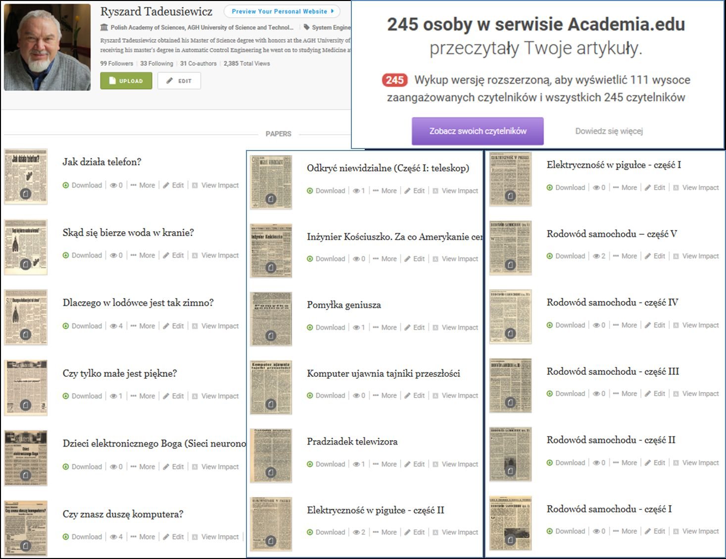 Udało mi się to częściowo zrobić z książkami, które można znaleźć między innymi tutaj. Sporo moich artykułów naukowych udostępnił portal ResearchGate. Ale poza zasięgiem internautów pozostawało wciąż kilkaset publikacji popularnonaukowych.