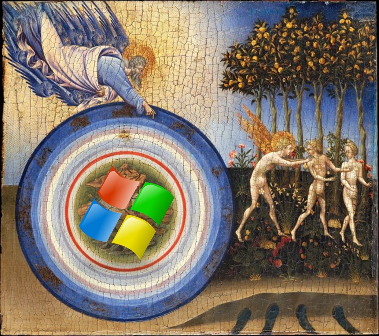 9. Wtedy rzekł Pan Bóg do Billa: "Ponieważ to uczyniłeś, będziesz przeklęty wśród wszelkiego bydła i wszelkiego dzikiego zwierza. I ustanowię nieprzyjaźń miedzy tobą a Użytkownikiem, on będzie cię zawsze przeklinał a ty będziesz mu ciągle sprzedawał nowe, coraz gorsze Windows."