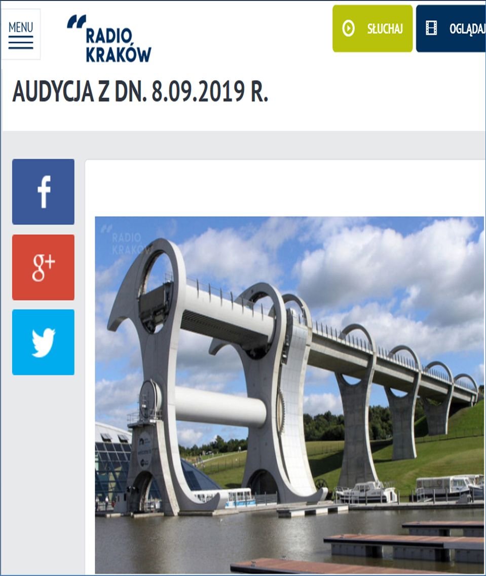 Wakacje się kończą, ale u wielu z nas pozostaną piękne wspomnienia - między innymi takie, które są związane z wodnymi wędrówkami. O jednym z takich "wodnych" tematów opowiem w "Radio Kraków" w przyszłą niedzielę (8.9.2019) w audycji "W kręgu nauki" o godzinie 12:07 (zaraz po hejnale). Będę w tej audycji opowiadał o kanałach i śluzach, a także o unikatowej windzie dla statków (widocznej na zdjęciu powyżej), którą wybudowali Szkoci.