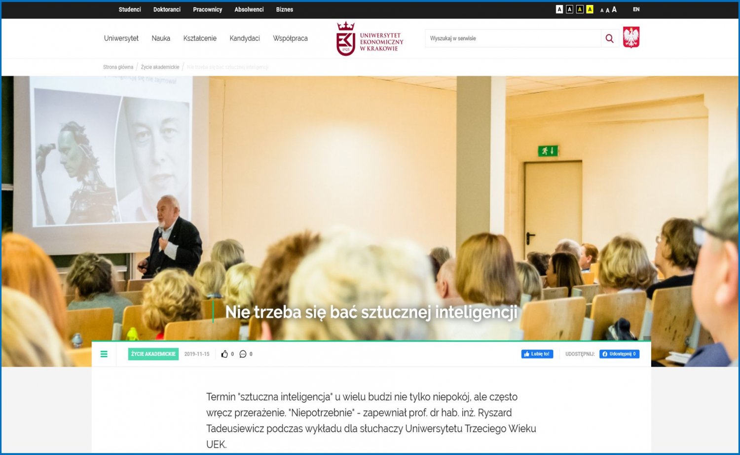 Wspominałem już na tym blogu o wykładzie na temat sztucznej inteligencji, jaki przeprowadziłem kilka dni temu na Uniwersytecie Trzeciego wieku UEK. Dzisiaj pozwalam sobie pokazać kilka zdjęć z tego wydarzenia.