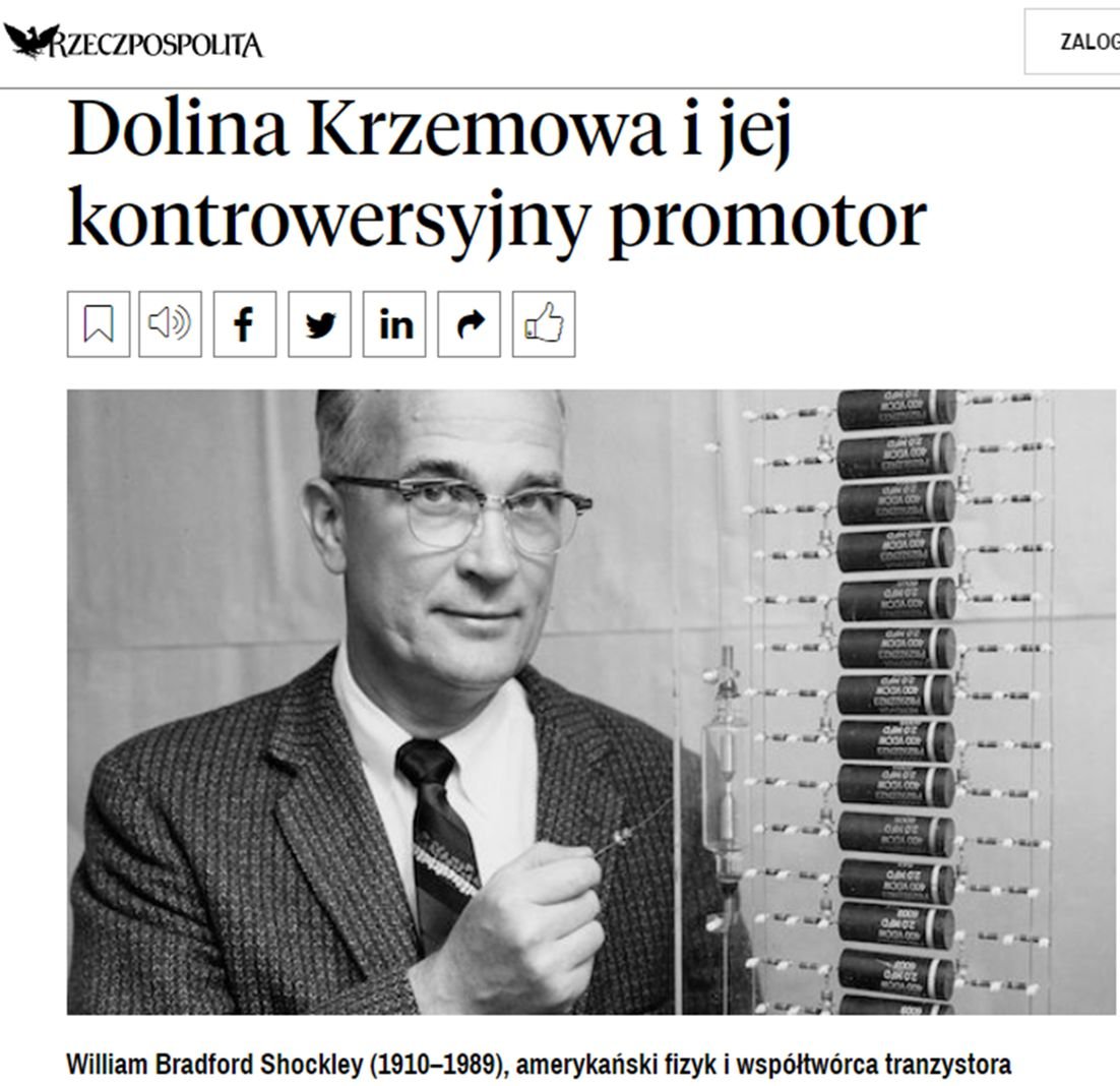 Krzemowa Dolina. Miejsce, gdzie powstaje i rozwija się technologia jutra. Warto dowiedzieć się o działaniach człowieka, który w pewnym sensie ją stworzył, ale był zdecydowanie kontrowersyjny w swoich poglądach i działaniach. To niezwykle barwna postać!