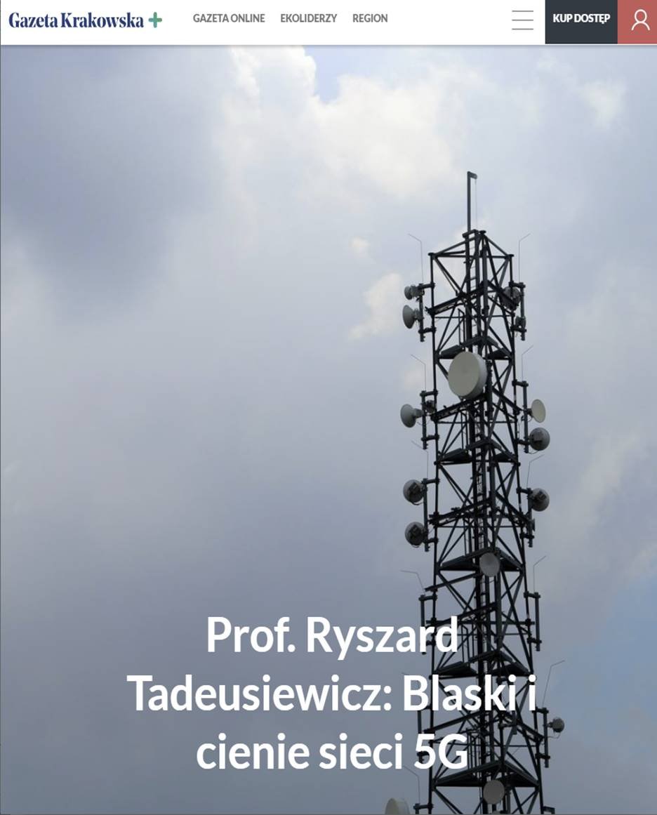 W środę 18.11.2020 opublikowałem w Gazecie Krakowskiej krótki (mam limit 1770 znaków, których nie wolno mi przekroczyć!) felieton na temat tak zwanej sieci 5G. Wszyscy używamy telefonów komórkowych i bezprzewodowego Internetu, więc pomyślałem, że warto o tym także wspomnieć na tym blogu.