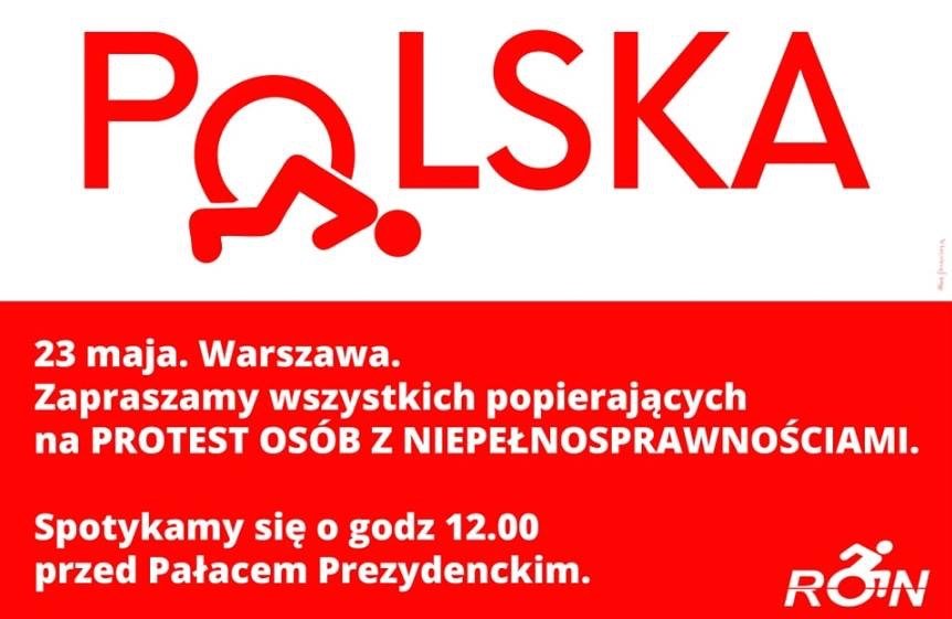 W czwartek 23 maja niepełnosprawni i ich opiekunowie ponownie będą protestować pod Sejmem. Protest zbiegł się z rocznicą zeszłorocznego protestu tych osób w Sejmie, podczas którego władza PiSu próbowała wykurzyć protestujących zasłaniając ich kotarą, utrudniając dostęp do sanitariatów, zabraniając spaceru po ogrodach sejmowych.