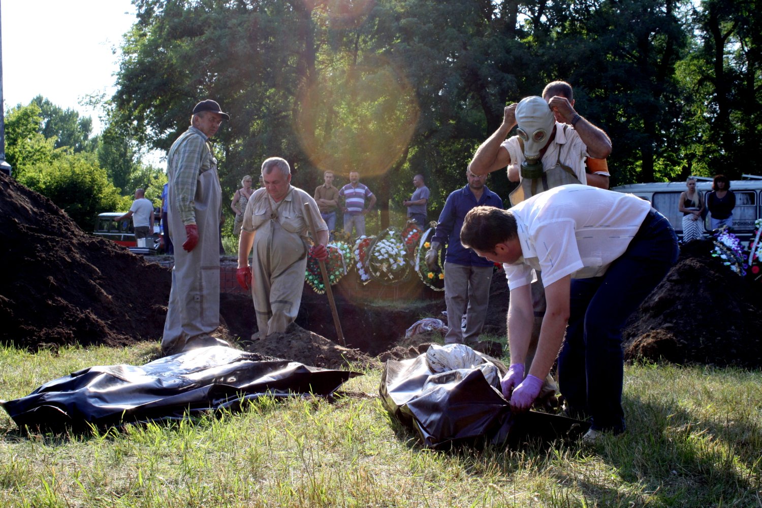 Naoczni świadkowie opowiedzieli, jak 11.06 (czyli w czasie kiedy Słowiańsk był kontrolowany przez separatystów) widzieli w tym miejscu pracującą koparkę, a następnie dwóch mężczyzn ubranych w odzież wojskową, wyrzucających z ciężarówki ciała owinięte w folię.