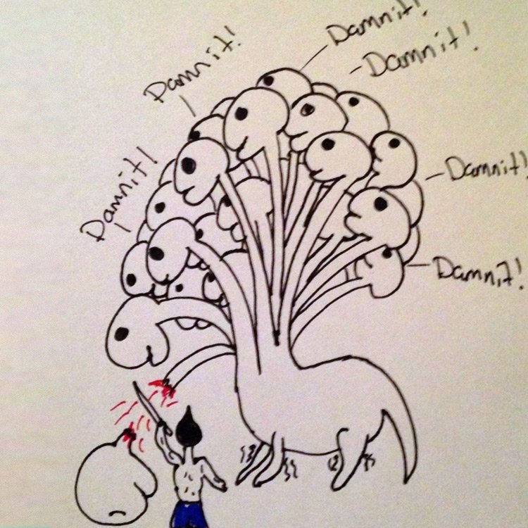Według mitologii greckiej hydra była potworem, któremu po odcięciu jednej z głów wyrastały na jej miejscu dwie lub trzy nowe. Analogiczna perypetia odnosi się do bohatera niniejszego tekstu.