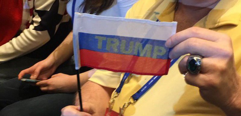 Dwóch amerykańskich aktywistów, wymyśliło happening polegający na wręczeniu zwolennikom Donalda Trumpa tysiąca małych rosyjskich flag z nadrukowanym nazwiskiem Prezydenta, którego mieli nimi przywitać podczas jego wejścia na scenę. Schodziły jak świeże bułeczki.