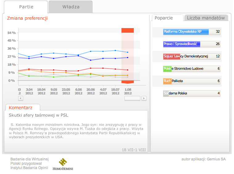 PO – 27% (-5% od poprzedniego badania z 12.07, -12% od wyborów),