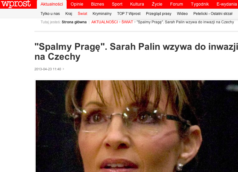 Czy wpadka "Wprost" z wiadomością jakoby Sarah Palin pomyliła Czechy i Czeczenię, to kolejny dowód na "upadek dziennikarstwa", czy może problem leży głębiej?