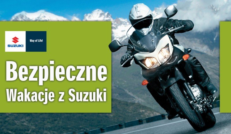 W ramach akcji „Bezpieczne Wakacje”, trwającej od 15 czerwca do 15 lipca 2012, autoryzowane serwisy Suzuki będą przeprowadzać bezpłatne, szczegółowe kontrole stanu technicznego motocykli oraz quadów.