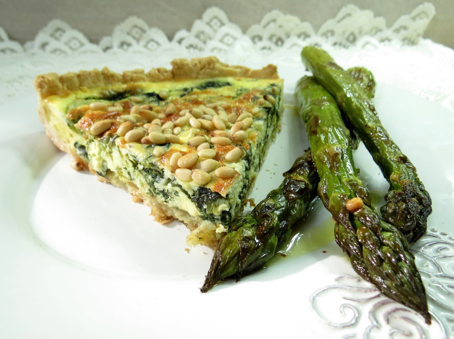 Przeżywaliśmy dzisiaj dylemat osiołka, co to mu żłobie i owies i siano dano. W naszym ulubionym sklepiku oprócz szparagów , które od kilku dni występują tam w dużym wyborze, pojawił się również dorodny szpinak. Z jednej strony (jak już nie omieszkaliśmy napisać) jesteśmy właśnie w fazie szparagowej, a to w końcu zobowiązuje. Z drugiej jednak, szpinak kusił nas swoimi jędrnymi liśćmi, jakby chciał powiedzieć: „szparagi będą także jutro, a ja ze swą ulotną świeżością mogę nie doczekać”. Dręczący ten dylemat rozwiązaliśmy iście po Salomonowemu: kupiliśmy i jedno i drugie.