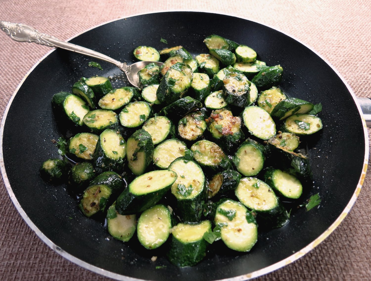 Wypatrzyła nas dzisiaj na targu młoda cukinia – mała, jędrna i upojnie zielona. Bez oporów daliśmy się jej uwieść, tym bardziej, że w tym roku po raz pierwszy nas wypatrzyła. Bez niepotrzebnych deliberacji (w końcu nie po raz pierwszy mamy okazję ze sobą obcować) zaprosiliśmy ją do domu i, aby uczcić tę wizytę, otworzyliśmy podarowany nam swego czasu przez znajomych słoiczek organicznego masła ghee. Cóż to było za spotkanie! Delikatna, słodkawa i lekko chrupiąca cukinia, która nabrała subtelnego orzechowego posmaku masła ghee – czy trzeba wiele więcej?