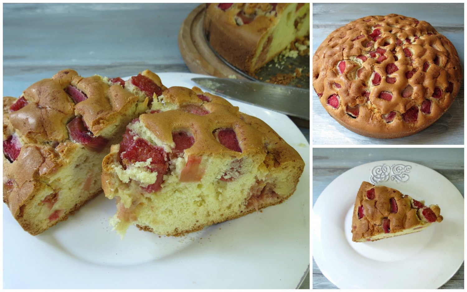 Choć z reguły stadło stanowimy całkiem zgodne, występują między nami pewne różnice. Jedno z nas ze słodyczy najbardziej lubi gorzką czekoladę, drugie – no cóż, czasem (nikt nie mówi przecież, że ciągle) ma do słodyczy pewną słabość. Nie zamierzamy ogłaszać konkursu na rozstrzygnięcie kto ma kubki smakowe nieco zwichnięte w stronę mniej, a kto w bardziej słodką. Każde stadło ma swoje tajemnice i my także nie zamierzamy ich zdradzać. Również do restauracji chadzamy raczej rzadko (w domu tyle jedzenia, że przejść trudno), więc prawdopodobieństwo, że daliśmy się nagrać i jakiś dzielny redaktor ujawni nasz sekret jest raczej znikome. Zdradzimy natomiast nasz prosty patent na kompromis, jaki zawrzeć można, na wypadek gdyby nasza różnica w rozumieniu słodkości występowała także w innych związkach. Ten patent ma na imię „ciasto rabarbarowe”.