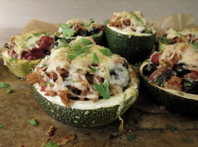 Najpierw wydrążamy cukinie. Jeśli wyrosła okrągła, przecinamy ją na pół i drążymy cukiniowe miseczki. Jeśli jest podłużna, przecinamy wzdłuż i robimy cukiniowe łódeczki. Wydrążoną cukinie wkładamy na 10-15 minut do piekarnika, żeby trochę zmiękła.