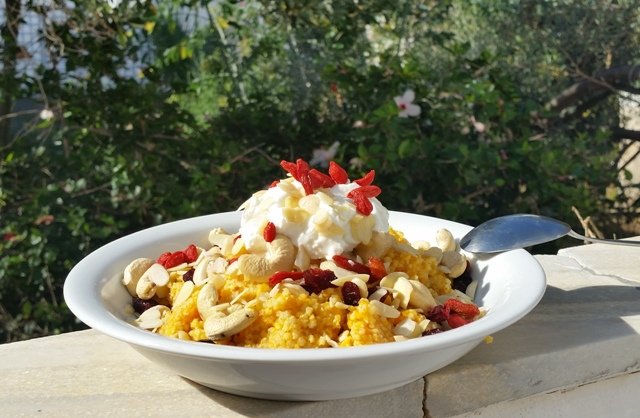 Wakacje rozkwitły w całej swojej krasie, społeczeństwo tłumnie odwiedza góry, morza i jeziora. Odwiedzamy i my. A że przed wyprawą na wyczerpującą wycieczkę albo leniwe plażowanie warto zjeść pożywne śniadanie, robimy sobie naszą ulubioną jaglankę w wersji full wypas - z morelami, orzechami, migdałami, jagodami goji i miodem. Żeby wesprzeć grecką gospodarkę dodatkowo ustrajamy nasze pożywne śniadanie solidną łychą greckiego jogurtu. Po takim posiłku żadna fala nam nie straszna.