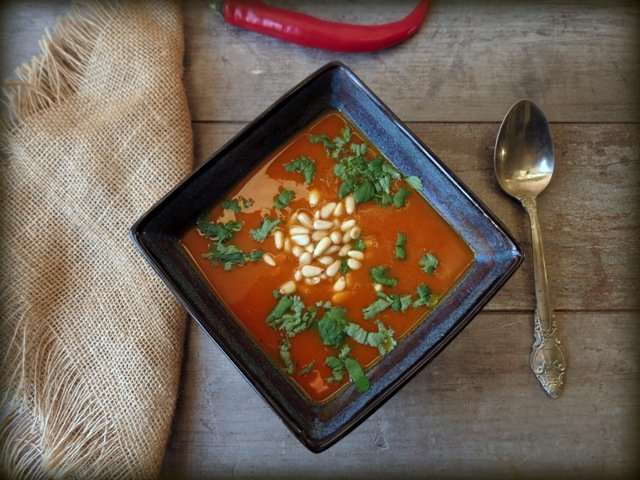 Zauroczeni dyniową obfitością w naszym zaprzyjaźnionym gospodarstwie rolnym poczyniliśmy wczoraj odpowiednie zakupy. Mamy więc pod dostatkiem naszej ulubionej Uschiki Kuri z wyspy Hokkaido, która doskonale nadaje się na zupę, bo można ją jeść ze skórką, dzięki czemu zupa nabiera pięknego pomarańczowego koloru. Kupiliśmy także okazałą sztukę dyni piżmowej, która dzięki grubej skórce może trochę poleżeć i z której wychodzi znakomity placek z dyni. Mamy także piękny okaz dyni makaronowej, która świetnie nadaje się do pieczenia. Na pierwszy ogień poszła jednak nasza ulubiona Hokkaido, bo za zupą stęskniliśmy się bardzo, a i dzień taki paskudny, że talerz gorącego kremu z dyni na pewno nikomu nie zaszkodzi.