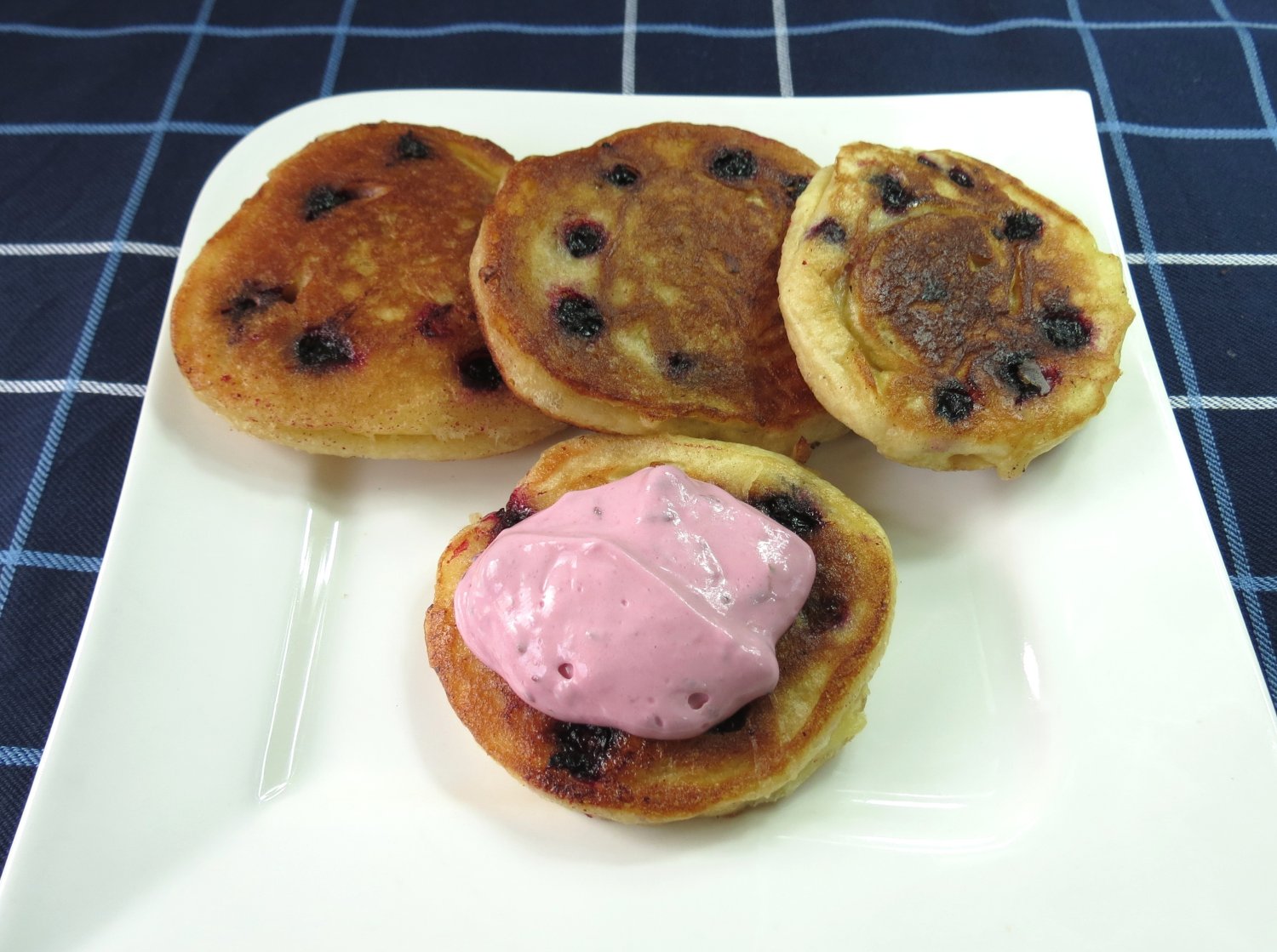 Trudno powiedzieć czy to tłustość masła orzechowego czy słodycz powideł sprawiła, ale zwieńczeniem tej skojarzeniowej karuzeli były racuchy. Początkowo klasyczne, dobrze wyrośnięte, lekko cynamonowe i posypane cukrem pudrem. Potem pojawiły się w nich cierpkie jabłka, też cynamonem i cukrem dobrze oprószone. Po jabłkach banany, które słodkie są same w sobie, więc cukru już nie potrzebują, ale cynamon znoszą wcale dzielnie. A ponieważ ta zrazu niewinna wymiana zdań zaczęła się od porzeczek, dołączyły one do bananów, a na to wszystko tłusta śmietana ubita z cukrem pudrem i, a jakże, znowu porzeczkami.