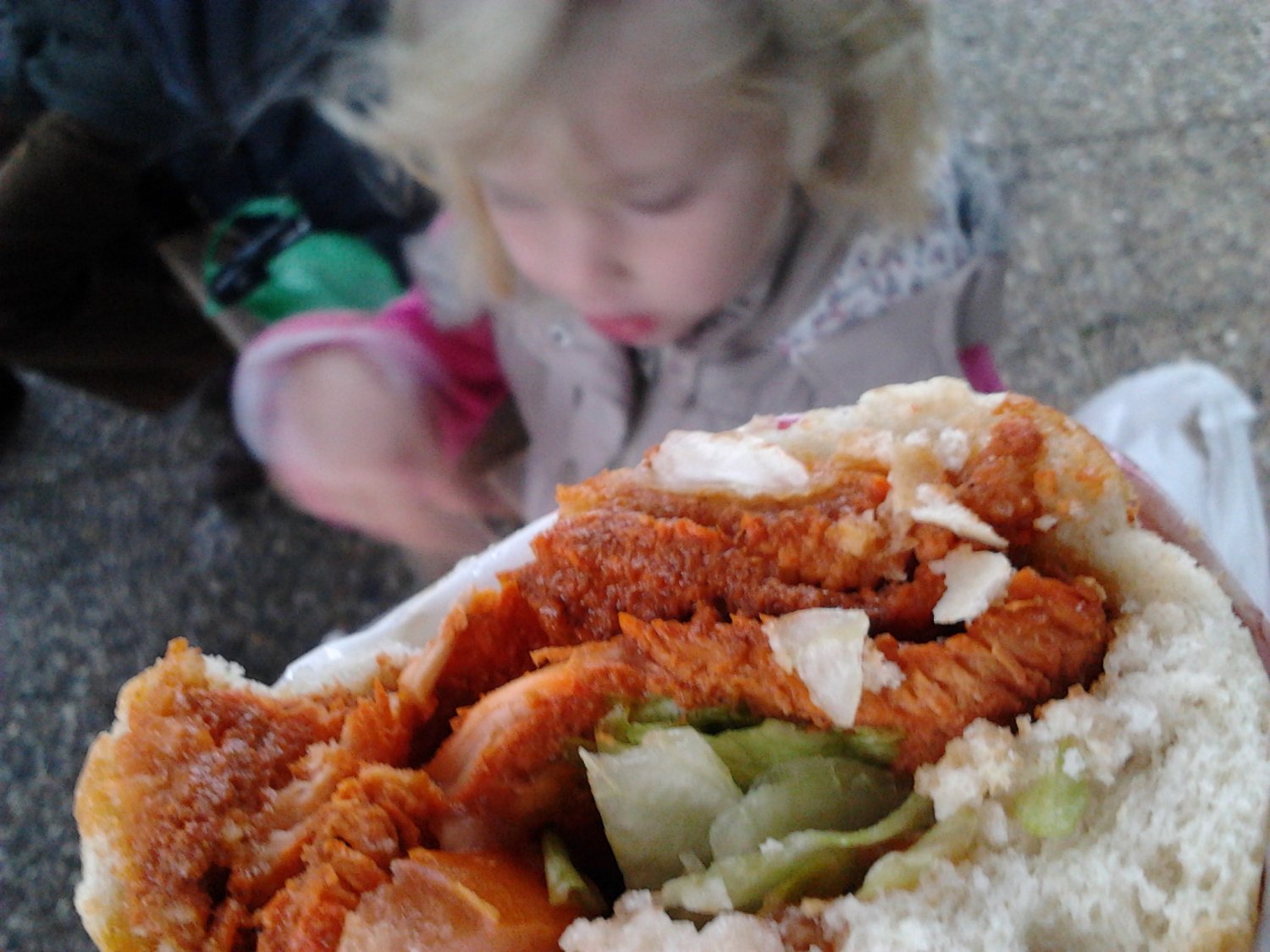 Kanapka na gorąco to świeżo smażone plastry kurczaka, do wyboru w kilku smakach, m.in. Tikka, Garlic, Lemon, Mojo Picon, Breaded, które z rozgrzanych blatów trafiają prosto do bułek. Do tego można wybrać kilka dodatków (pomidory, ogórki, cebula, sałata, sos). Całość kosztuje jedyne £2,80 i chyba jest najtańszą przekąską w okolicy. Ceną konkurować z nią mogą tylko tapasy w La Linea i mój ukochany spinach pie z Tasty Bite przy Irish Town, ale o nim jutro, bo jego zawsze jem w środę :)