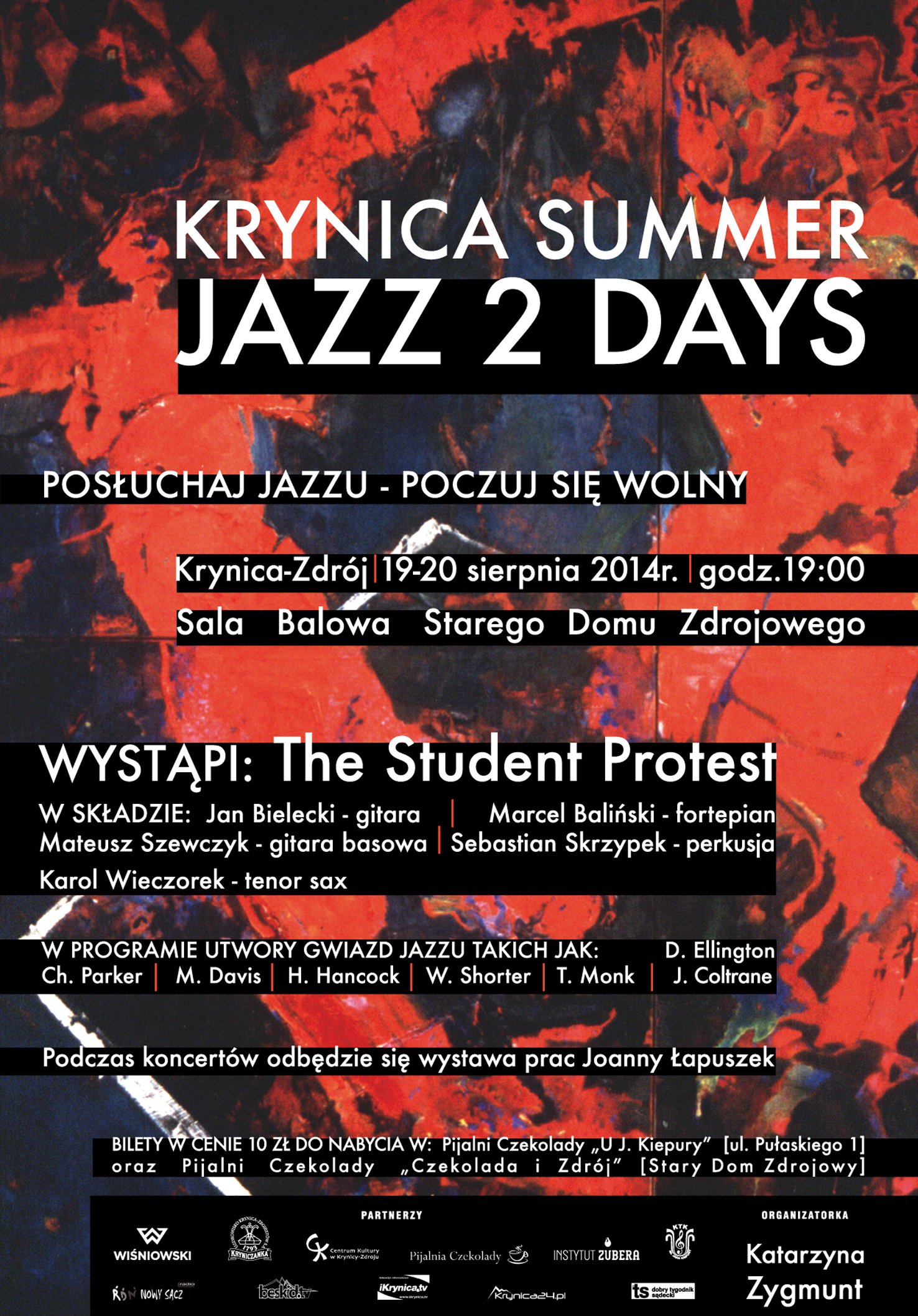 "Koncerty w ramach Krynica Summer Jazz 2 Days będą świetną okazją do relaksu jak również do oglądnięcia prac Joanny Łapuszek, która obecnie mieszka na Cyprze. Jest ona również kapitanem żeglarskim i motorowodnym. Pływała po Bałtyku, M. Północnym, Śródziemnym, Południowym i Północny Oceanie Indyjskim, Pacyfiku i Atlantyku. Jedną z najważniejszych tras, którą Joanna przepłynęła jest przeprowadzenie jachtu „Ptolemy” w dwuosobowej załodze na rocznej wyprawie z Australii na Cypr przez Indonezję, Malezję, Tajlandię, Nikobary, Sri Lankę, Malediwy, Oman, Jemen, Suden, Egipt, bez silnika, poprzez najniebezpieczniejsze regiony jeśli chodzi o zagrożenie piractwem (cieśnina Malakka i okolice Sukutry). Podczas tych wypraw prowadziła również pracę naukową w zakresie malarstwa.”- mówi Prezes Stowarzyszenia INFINITAS Katarzyna Zygmunt.
